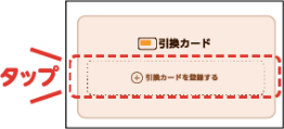 アプリ会員証画面の下部にある「引換カードを登録する」をタップ